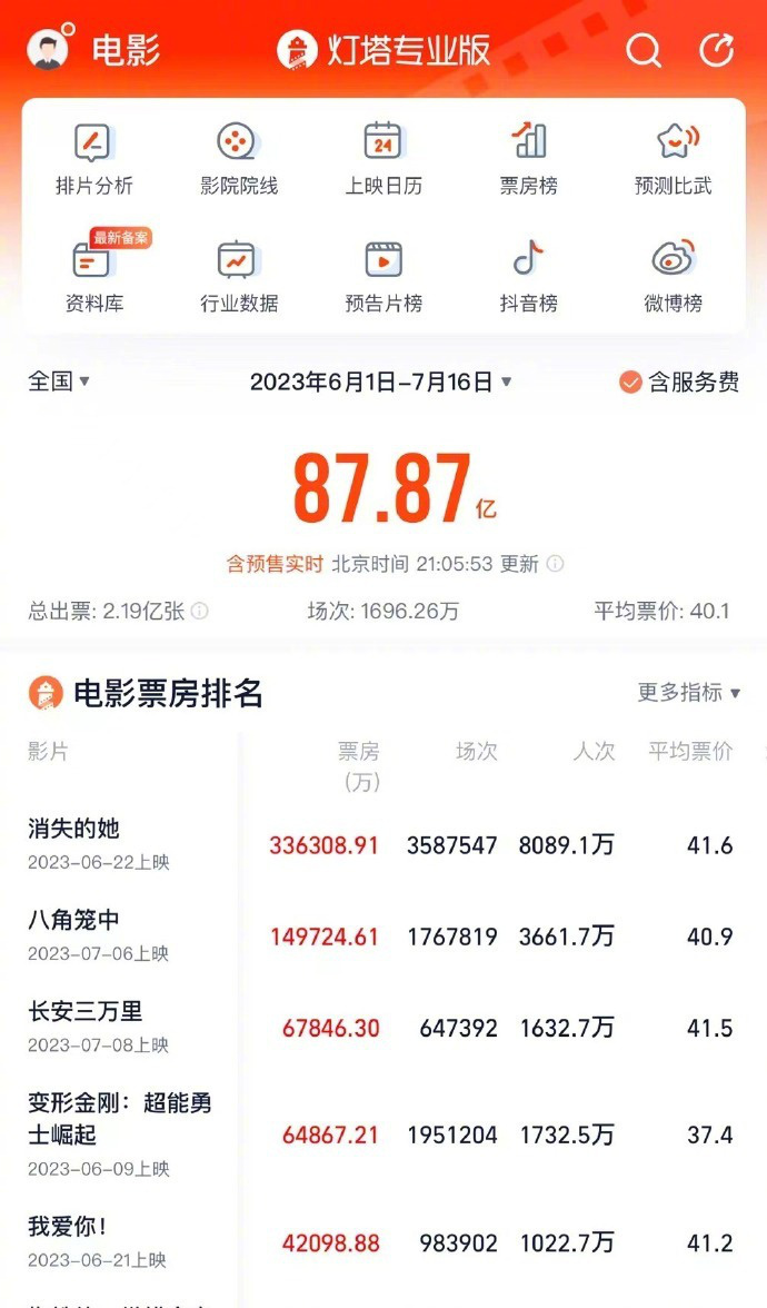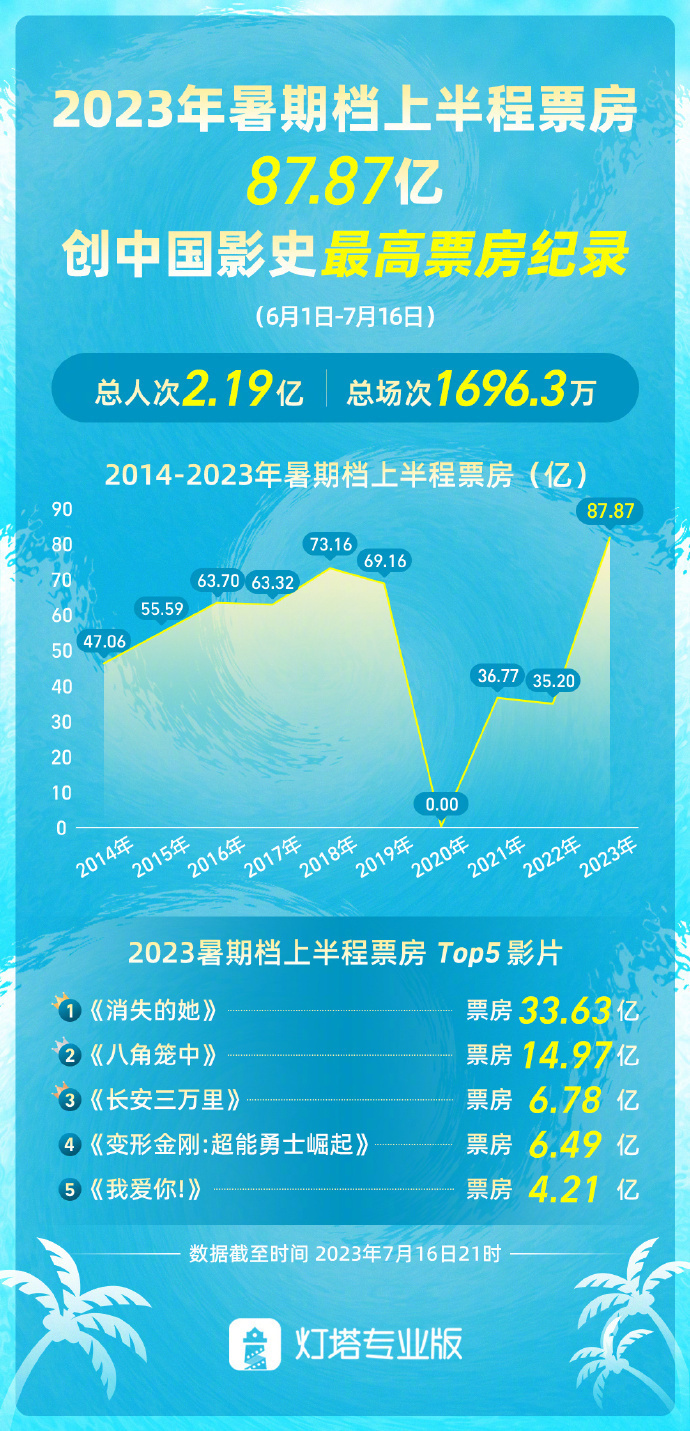 手机访问:wap.265xx.com创影史最高纪录!2023暑期档上半程票房达87.87亿