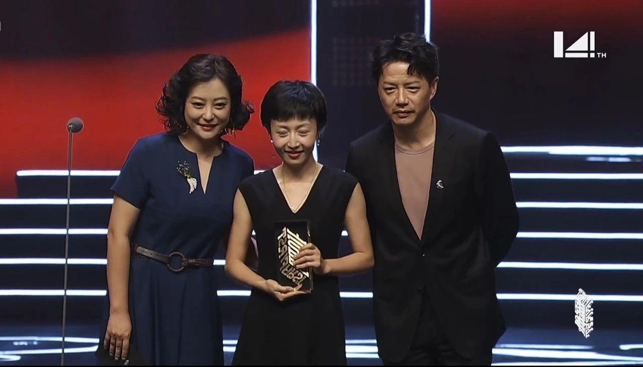 获最佳演员的周青在接受媒体采访时,旁边的直播屏幕跳出导演王晓振的脸,他获得了最佳剧情长片。段奕宏提醒周青看电视屏幕,周青满脸甜笑,镜头记录下了这对夫妻现场版的对唱情诗