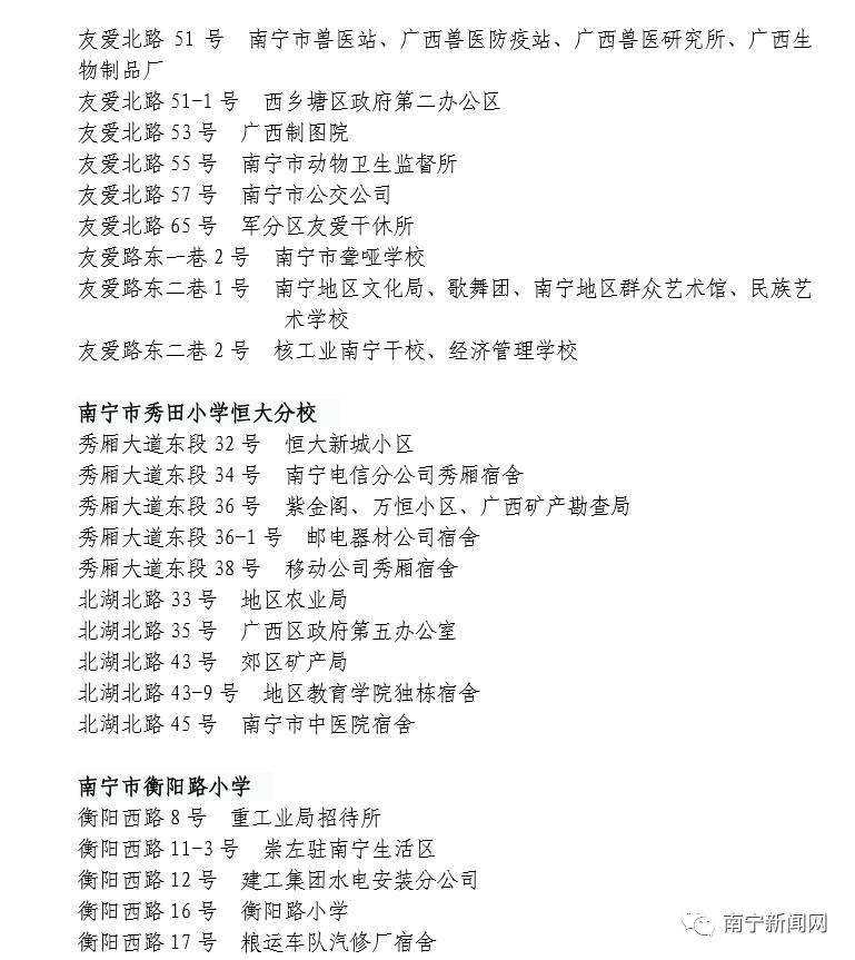 百花岭路:南宁市三屋园艺场,南宁市高坡园艺场1、2、3队;高坡岭路:18号红星小区。