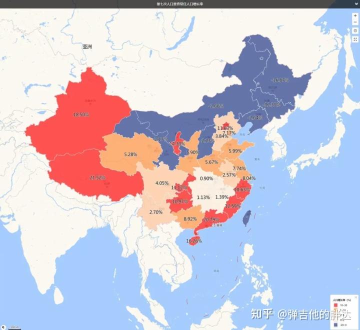 从中部地区重庆人口暴涨和其直辖市的地位有强相关性,苏浙两省位于东部沿海,外来人口流入较多。除了上述外部因素外,基本上是印证了贺雪峰从农村社会结构的聚居性和宗族文化的强弱来进行的南北中三大区域的划分。