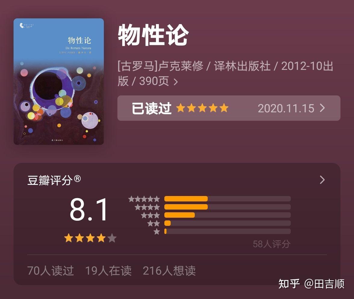我在这个回答里比较详细的说了《物性论》里的一些内容。总的来说就是,太多的认识都实在太超前,以至于你都要怀疑卢克莱修是不是穿越过去的了。