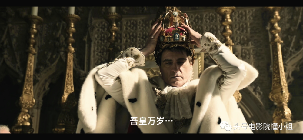 同时,预告片对拿破仑的自信和自负都进行了呈现,戴上皇冠的那一刻,简直霸气十足。