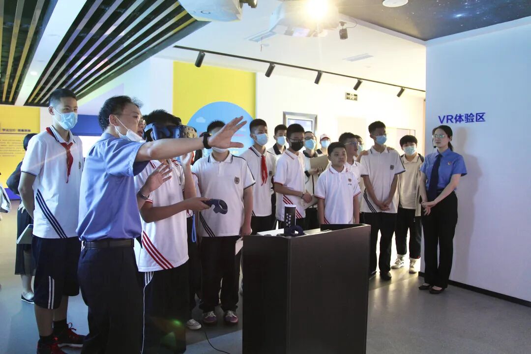 学生们在武汉市江汉区检察院青少年法治教育基地体验VR法律知识闯关游戏