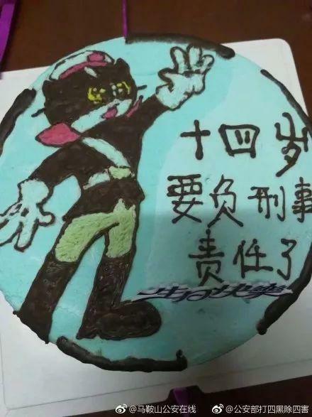 之前有个新闻,说警察的孩子过14岁生日,家里给准备了黑猫警长的蛋糕,蛋糕上写着:14岁要负刑事责任了。