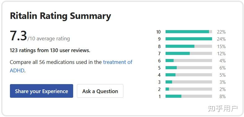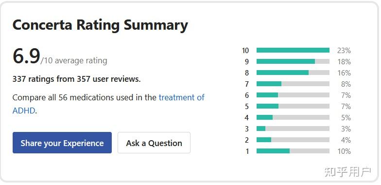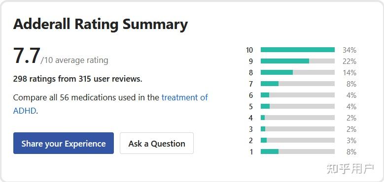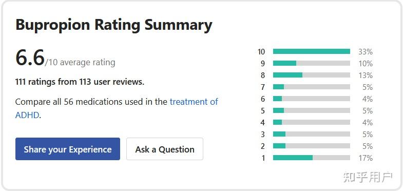 第六名是安非他酮(Bupropion),虽然整体分数不算高,但评分10的比例达到了33%, 处于所有药物的第三位,足可证明其疗效。其还可以用于双相情感障碍治疗,戒烟,重度抑郁症等。值得注意的是,在治疗双相,重度抑郁,ADHD等情况下时,剂量不能高于450mg/d, 否则可能会使患者出现躁狂(转换)或癫痫发作。
