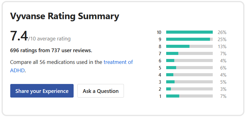 第三名是利右苯丙胺(Vyvanse), 这个是评论数最多的药物。