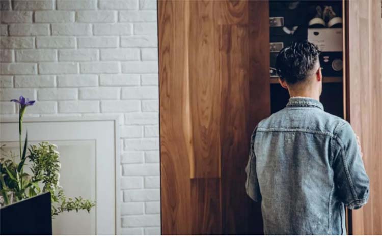 就在木质墙的那一面,其实是一个隐藏的柜子!