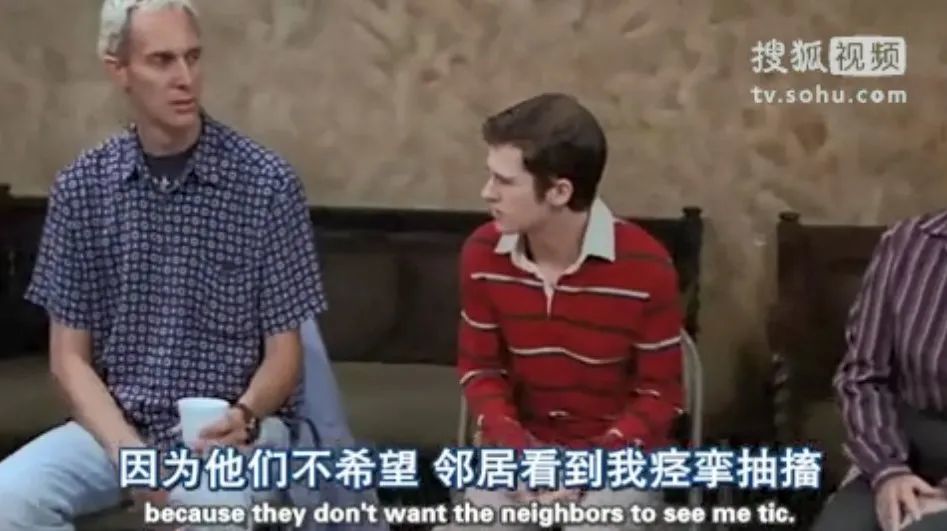 妈妈不会就此满足,她还是在继续研究寻找办法,她要让儿子过上正常生活。妈妈找到了妥瑞氏症的互助会,那里所有的人都得了妥瑞氏病。妈妈想让孩子从这些人身上学学,他们是怎样生活的。