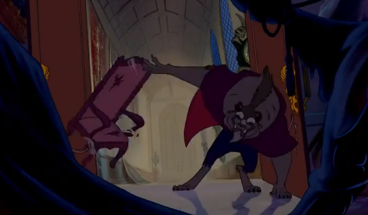 出自《美女与野兽》中,野兽因为被贝尔拒绝一同共进晚餐,愤怒的砸坏了屋子里的座椅的剧情。