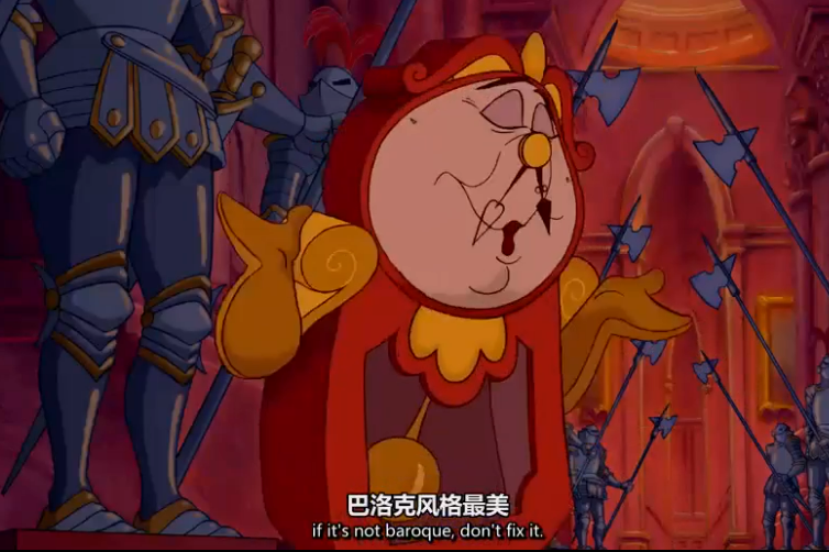 出自《美女与野兽》中,总管葛士华为贝尔介绍城堡内的剧情。