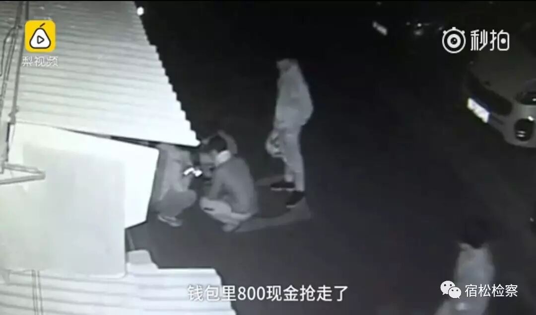 根据受害人所说,上来先被一个人撞了一下,然后就被6、7个人围着拳打脚踢,有一个人手里还拿着像电棒一样的东西。然后受害人被带到了某小区里面,钱包里800元现金被抢走,并通过微信扫码又划走300。