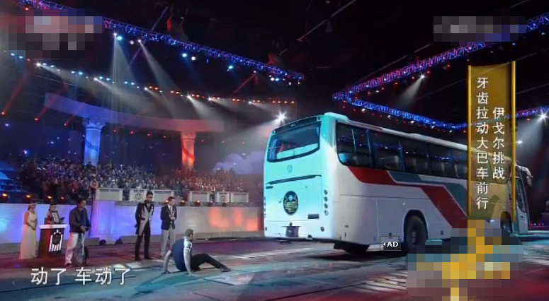 2015年1月7日,来自俄罗斯的杂技演员Igor Zaripov在中央电视台吉尼斯世界纪录特别节目《吉尼斯中国之夜》现场刷新了这项记录——人类用牙齿拉动的最重道路车辆。一辆初始重量为12890公斤的大巴车,加上一名司机、一名摄影师和10名观众,其最终重量达到了13713.6公斤。Igor成功地将他们拖动了5米。