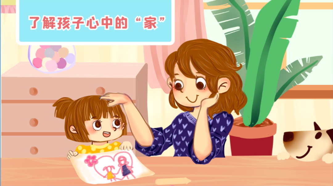 可以让孩子画一张画代表家庭,让孩子拿小动物代表家人。比如孩子拿狮子代表爸爸,你可以问,这是一头怎样的狮子呀?孩子如果说,“这是一头凶猛的狮子,它会吃其他动物”,我们就可以了解到爸爸在他的心里是一个很吓人的形象,让他感到很害怕。
