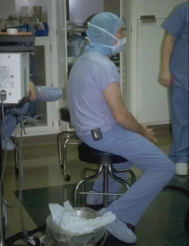 比如说,下面这张图,近处的坐姿是正确且放松的,远处的坐姿则是完全错误的。