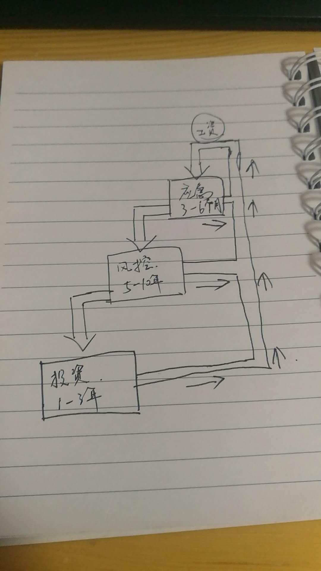 但是,这个图的思路很好,不管它是怎么来的吧,起码对于我们如何处置家里的钱能有个不错的建议。通过我的理解,我给它按照时间先后,从横向又重新整理了一下。