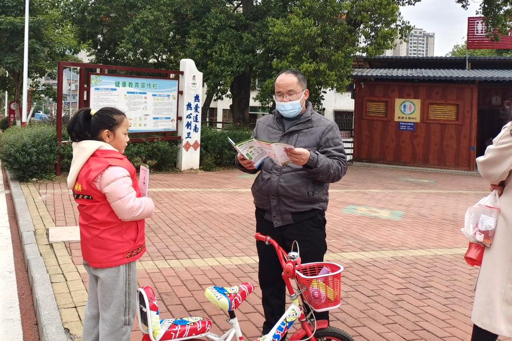 学生志愿者到石泉公园派发垃圾分类宣传册,增强群众垃圾分类意识,共同守护美丽连南环境。