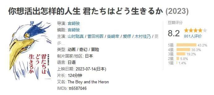 国内方面,8.2的豆瓣评分看似并不算低,但这已经是宫崎骏长片动画中最低的一档口碑,与宫崎骏前一部作品《起风了》相当。