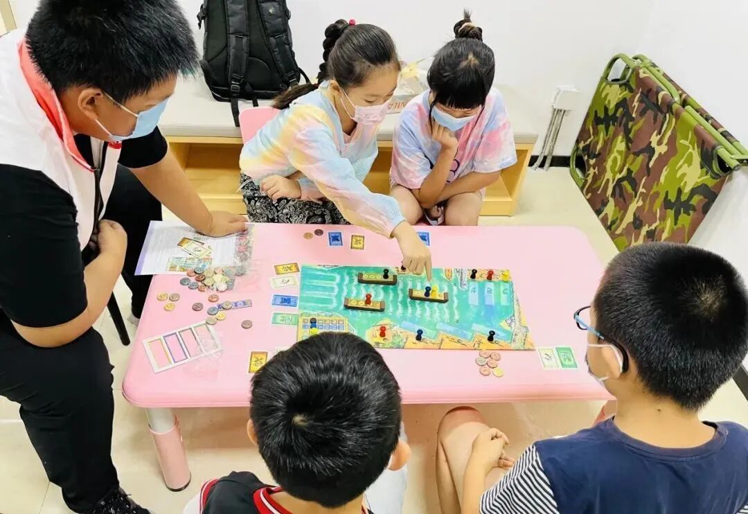 课程内容包括知识讲解、思维游戏和桌面逻辑思维游戏。授课老师以提问的方式将孩子们引入课程内容,大家积极讨论,纷纷提出自己的想法,课堂气氛轻松活跃。在《马尼拉》桌面游戏环节,孩子们在老师的引导下思考如何“排兵布阵”、平衡利益,随着其他人决策的变化,每个人都及时调整自己的策略。通过游戏锻炼了孩子们的思维能力、决策力以及合作能力。