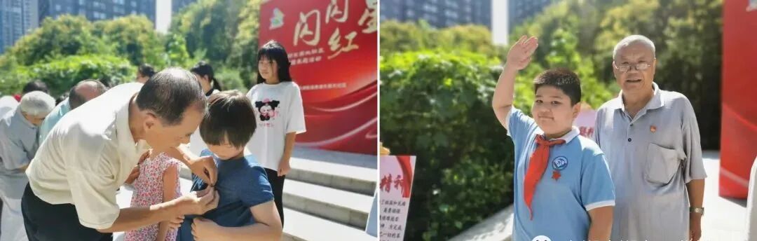 老兵们亲手为未成年人佩戴上小红星,红色精神在传承,军人精神更需要孩子们的继承和发扬。孩子们纷纷表示,将传承弘扬军人奉献精神,努力学习,报效祖国。