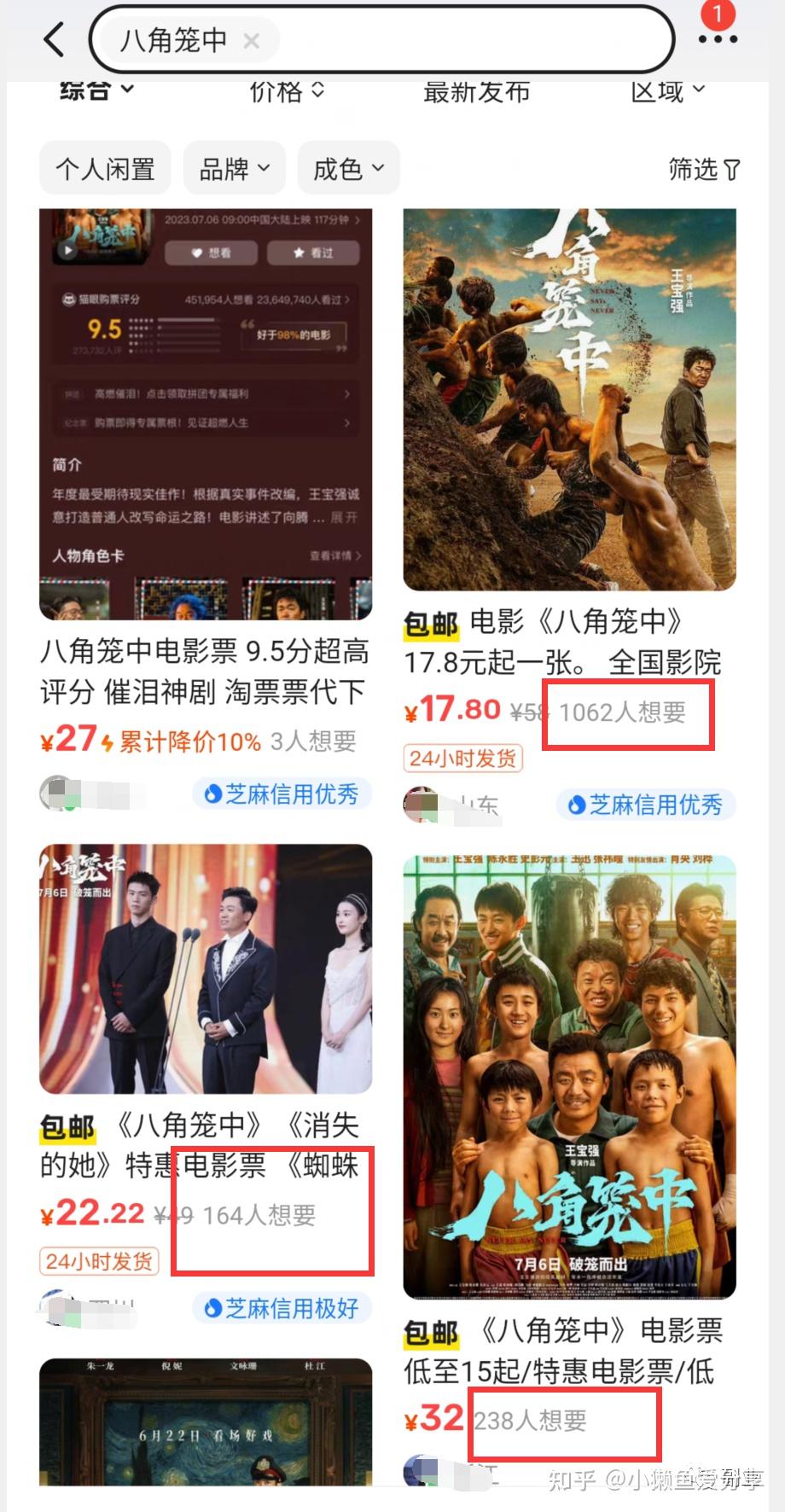 我圈出了几个闲鱼账号,唯一遗憾的是不太清楚他们每天能卖出多少张票,因为他们设置了动态屏蔽,但我猜应该是每天至少有30张订单,因为电影太受欢迎了!