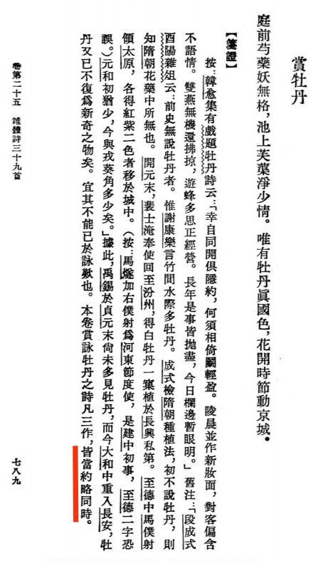 另外对于《思黯南墅赏牡丹》,瞿蜕园在《刘禹锡集笺证》里写到:绝句作赏牡丹。这说明其与《赏牡丹》同名,两首诗本为一体。