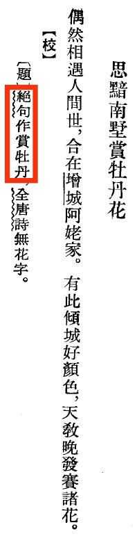 南宋《苕溪渔隐丛话》将《思黯南墅赏牡丹》的诗句与《赏牡丹》合入《赏牡丹诗》。