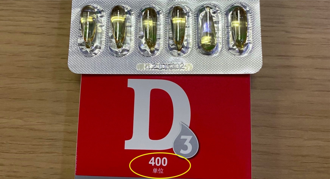 注:IU/d(day,每天)是单位名称,比如上图这个产品,1颗就有400IU,预防剂量每天吃1颗。