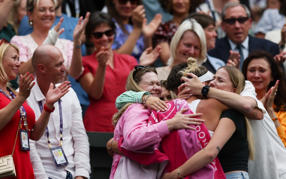 万卓索娃夺冠后和亲友庆祝。图/新华社