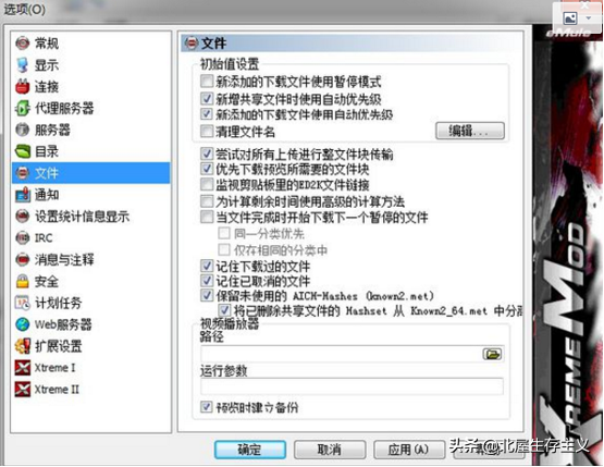 启动时检查Xtreme的新版本:这个是检查eMule Xtreme的。 (不建议勾选)