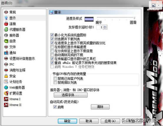 显示更多控制:推荐开启,如果你的eMule Xtreme 界面和我不同的话,是因为我开启了这个选项!