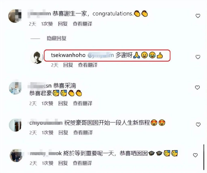 虽然谢君豪没有明说,但网友们都猜到了他这是在英国某大学,参加22岁女儿谢采湳的毕业典礼,纷纷表示祝贺,谢君豪则简单回复,表示感谢。