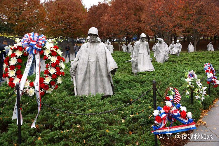 别想当然了。美国的朝鲜纪念碑群雕塑,在林肯纪念堂和华盛顿纪念碑中间大草坪的南端。