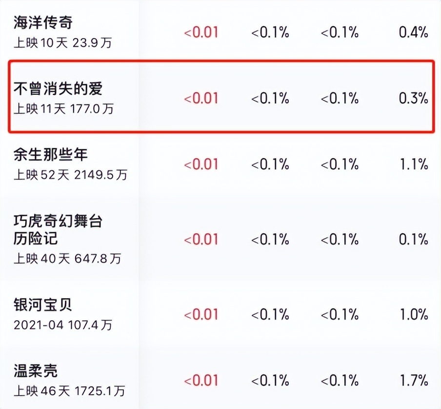 可以说,《不曾消失的爱》很难看到让人有花钱买票走进影院一睹为快的欲望,老生常谈的故事+满满的焦虑氛围,都仿佛在劝退观众,也难怪上映这么多天,还是平平无奇的状态,甚至很多人压根就没发现这部电影。