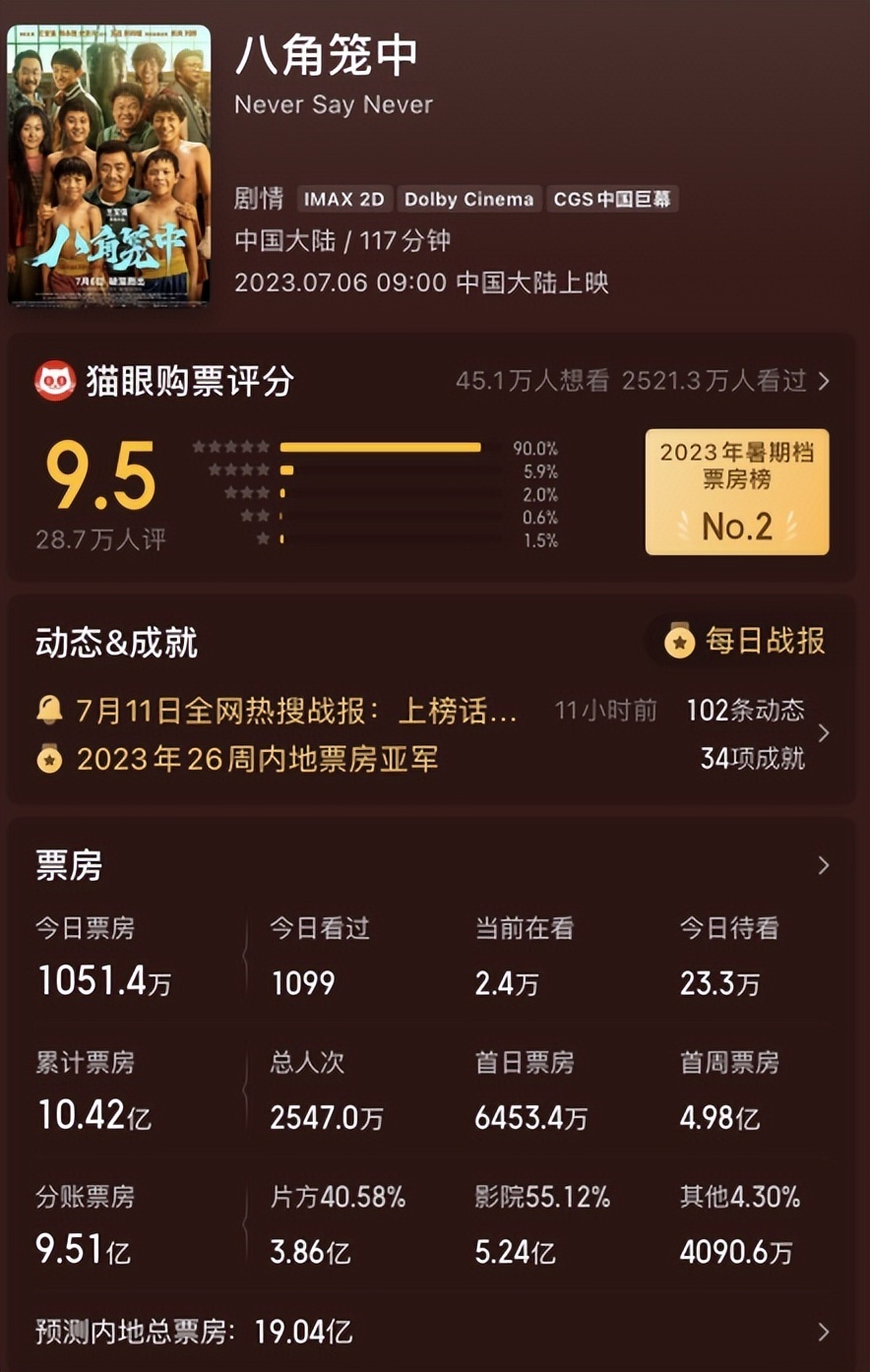 但毕竟影片已经上映19天,后续票房上涨乏力。而当下最有竞争力的电影还是要看《八角笼中》。