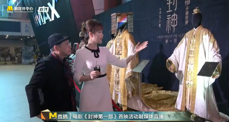 中国电影博物馆现场,电影频道主持人蓝羽主持首映礼及《封神第一部》研讨会,并在“蓝羽会客厅”直接对话核心主创;主持人郭玮主持首映红毯仪式及M观影团等映后交流活动,向观众推介全系列主创嘉宾;偕影片美术指导及造型指导叶锦添、中国电影博物馆馆长黄晓伟、影评人周黎明同游服饰道具展厅,主持人罗曼为观众探秘影片视觉符号背后的奥秘;坐镇电影频道直播间,主持人金泽与应邀做客的专家学者为直播观众串联讲解独属这一系列的文化意义。透过电影频道融媒体矩阵全平台,本次直播活动面向全网播出,高声量助力《封神第一部》“开榜”上映。