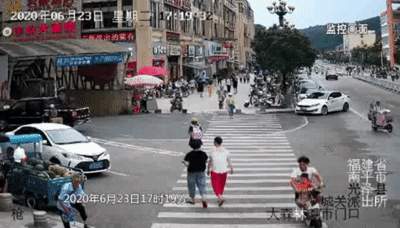 一学生载同学在路口未观察减速,撞到正在横过斑马线的两名儿童。