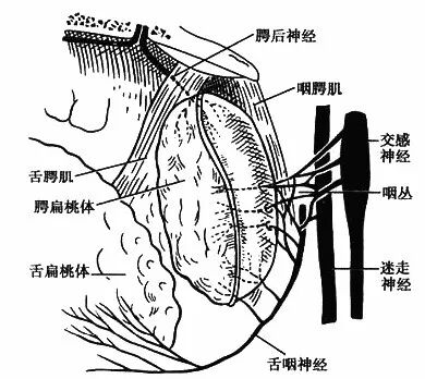 其中运动神经主要来自副神经(支配咽喉肌)。鼻咽上部、软腭及扁桃体上端的感觉为三叉神经的上颌神经所支配,且后两个部位为上颌神经的腭后神经所支配。扁桃体下端的感觉直接由舌咽神经未经咽丛的分支所支配。