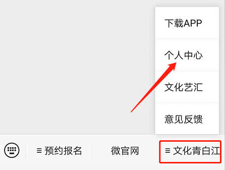 ②点击菜单栏【文化青白江】→【个人中心】,上传信息,进行实名认证。