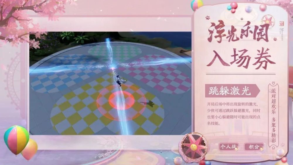小贴士:少侠尽可能躲避激光和点名,存活时间更久的少侠即为获胜者。