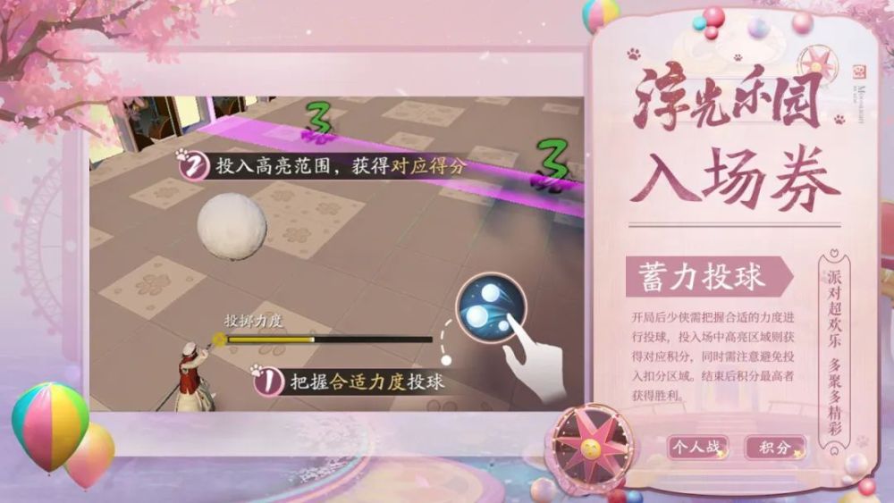 开局后少侠需把握合适的力度进行投球,投入场中高亮区域则获得对应积分,同时需注意避免投入扣分区域。结束后积分最高者获得胜利。