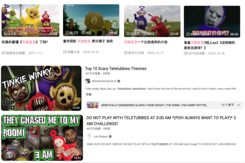 甚至有人认为《天线宝宝》隐藏着反社会的文化隐喻,把它视为儿童邪典,用Cult*风格对之进行解读或者二次加工。