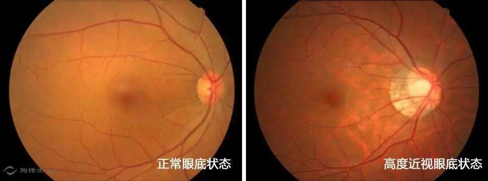 而对于高度近视的人,眼底病变的风险会大大增加,甚至还会造成失明。和中低度近视相比: