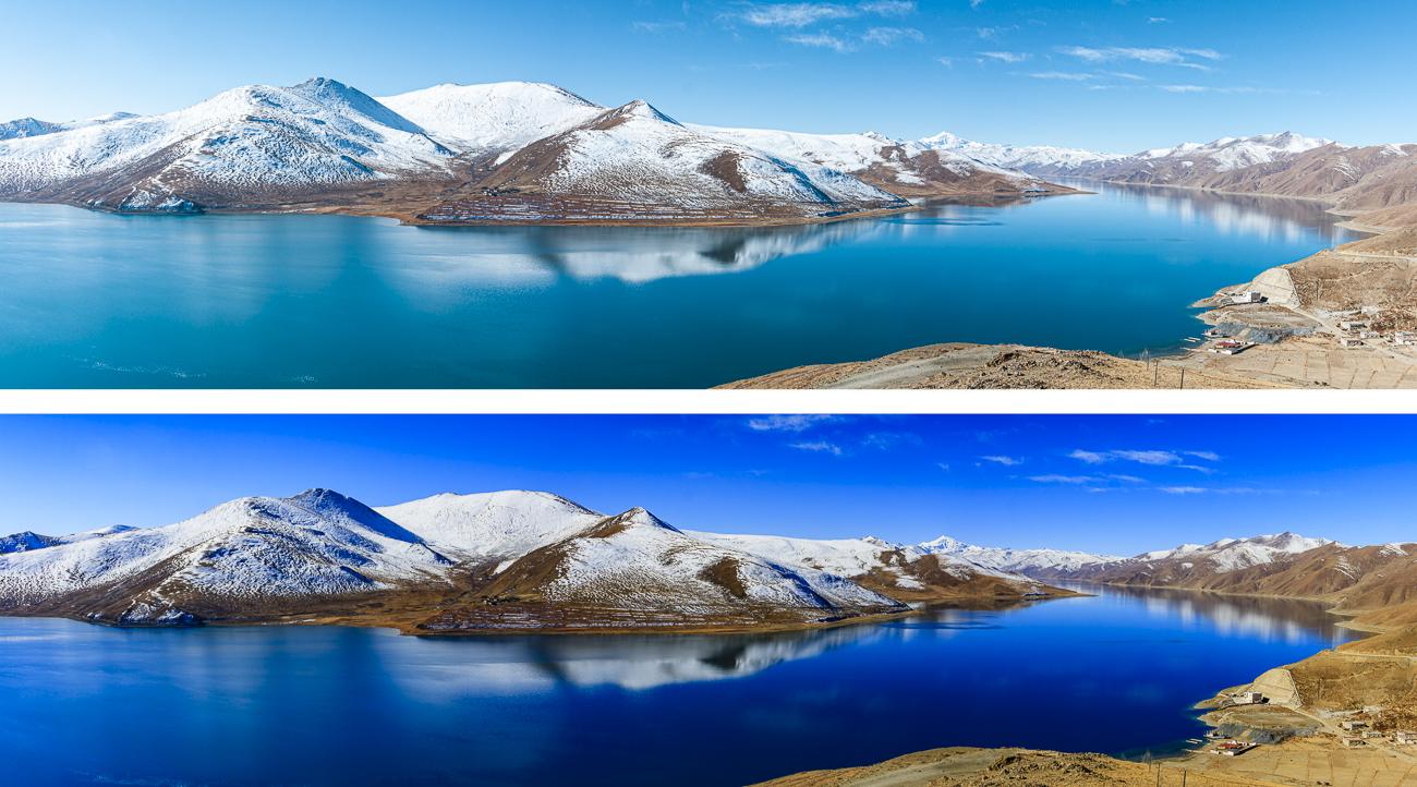 我也在反省和改善,2021年7月,我花了两万多去北京参加了李涛、董冬老师的良知塾影调控制与呈现研修班,Thomas看看世界老师、叶梓颐老师,也曾经参加过他们的课程。这次课程我每天7点去开教室门,十点钟关门回宿舍,学的很认真。也改变了我对色彩的认识,比如同一张羊卓雍错的照片,上面这一张是最近的修图,也是我从已故的 @高函 老师的调色风格向董冬老师指引的方向的探索。