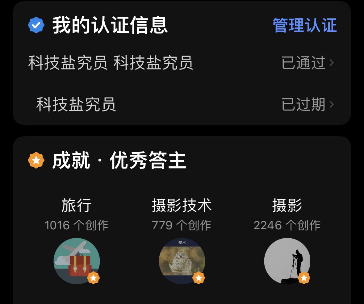 2021年2月,在知乎得到摄影方面官方认可,摄影技术优秀回答者