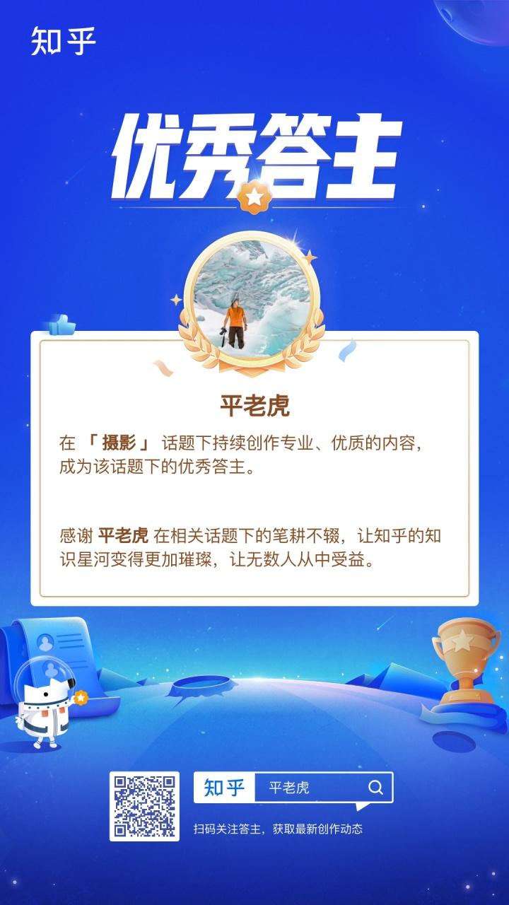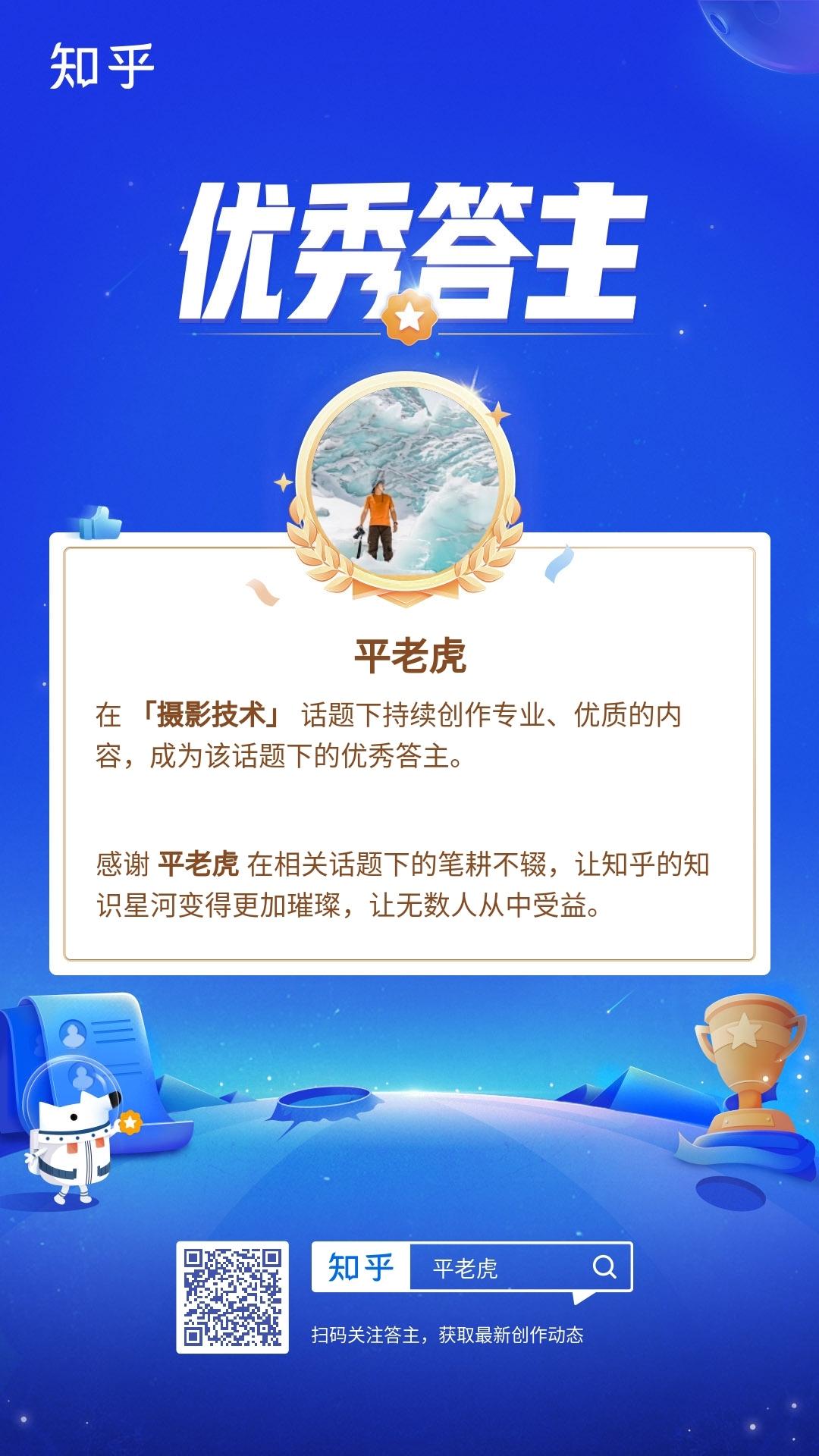2023年3月,平老虎荣获知乎【摄影优秀回答者】,这是知乎官方的认可,质疑平老虎照相水平高低的朋友,看到这里可以不用往下看了,只管骂知乎好了。