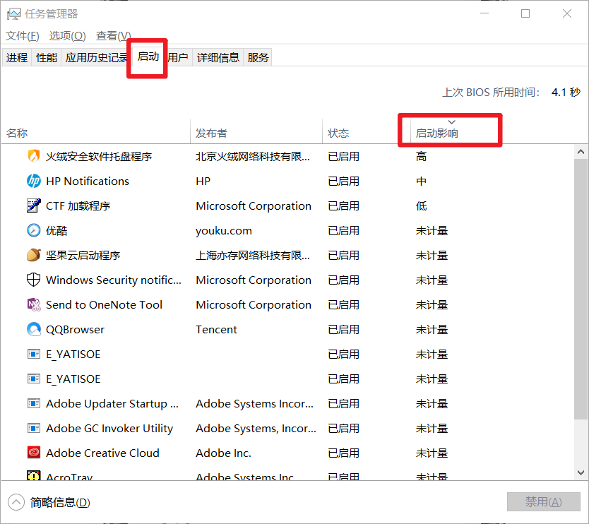 阻止无需开机启动的应用程序在开机时启动,以节省内存和 CPU,并加快登录过程。在任务管理器中现在有一个启动管理器,可用于管理启动程序。单击【启动】选项卡,禁用不需要开机启动的应用程序。同时,任务管理中有一个【启动影响】的标签,这会明确指出哪些应用程序会拖慢我们的电脑启动。