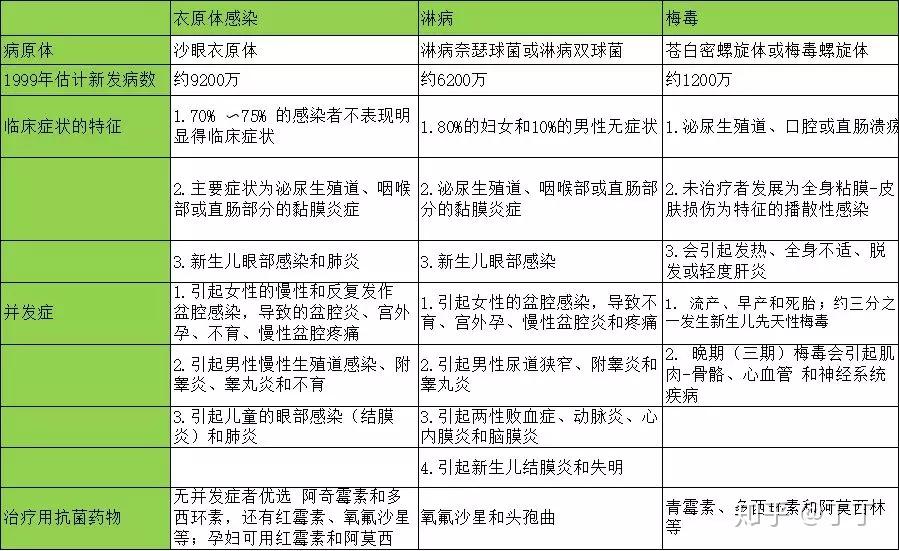 先给大家放一张各类性传播疾病的对照表,让丁友们简单认识一下这些疾病。
