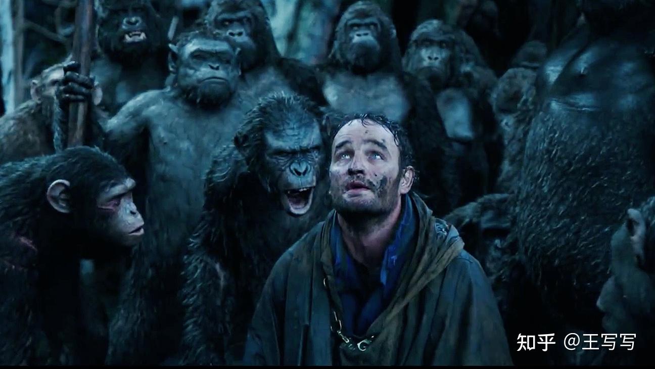 最明显的佐证便是影片中的猩猩,尤其以凯撒为代表,是比人类更具人性积极面的一方。本质上讲,凯撒既是自己族群的领袖,也是人类的救世主,他的理智与谨慎和明确的反战思想,还有那种强烈的道德感,均体现出影片对其极尽所能的歌颂意味,甚至最终将之塑造成了耶稣式的人物。另一方面,马特·里夫斯在《猩球崛起》中塑造的末日世界,是混乱的,热闹的,具有鼓动性的,而不是彻底的破败荒凉。
