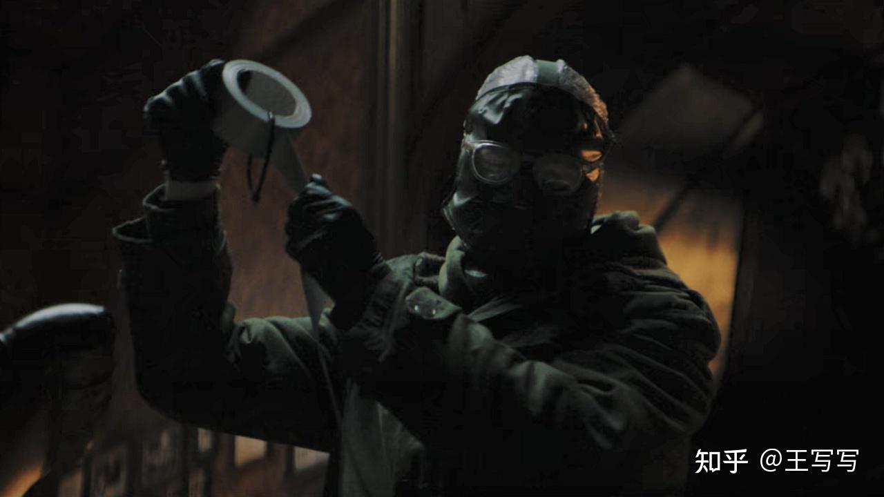 《黑暗骑士》里小丑时而通过电视媒介散播恐慌,时而亲身上阵大搞活动,是很常见的恐怖主义行径。而从剧作的角度上讲,《新蝙蝠侠》的谜语人感觉就是全程躲在网络直播当中,但事实上他也亲手杀了不少人,却因为戏份不多,渲染力度一般,并缺少与蝙蝠侠正面冲突的桥段,于是妨碍了对他极端人格与疯狂行径的深入刻画,进而与观众的距离越来越远。于是,开场那个试图让我们逼近人物的遮罩镜头便失效了,叙事文本反而把他推得越来越陌生化,我们也难以切身感受其所带来的恐惧。至此,蝙蝠侠与戈登的查案过程也旋即退缩为一场解谜游戏,没有了倒计时般的紧张感。而渐行渐远的谜语人,虽然一直都领先蝙蝠侠一步,但缺少意料之外的诡计,一直没能真正凌驾于故事世界之上,只得停留在感官材质层面。这也就造成了第二个结果,便是对描绘谜语人“超我化暴力”这一特征的半途而废。