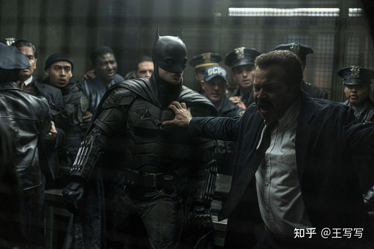 除了变黑以外,我甚至无法对詹姆斯·戈登留下更多印象,他似乎在这里纯粹成了蝙蝠侠的助手(但实际上蝙蝠侠应该是他的助手)。随着近期一些新闻的披露,戈登的戏份想必是被删减了很多。但无论如何,从成片效果来看,这位不输于蝙蝠侠的正义符号完全沦为功能性角色,而且多数是被动的工具化。有大量他和蝙蝠侠一起在犯罪现场找线索的场景,太多时候他的作用就是接住蝙蝠侠的台词,活活像一个捧哏演员,这让角色刻意换用黑人演员的制片策略显得更没理由。